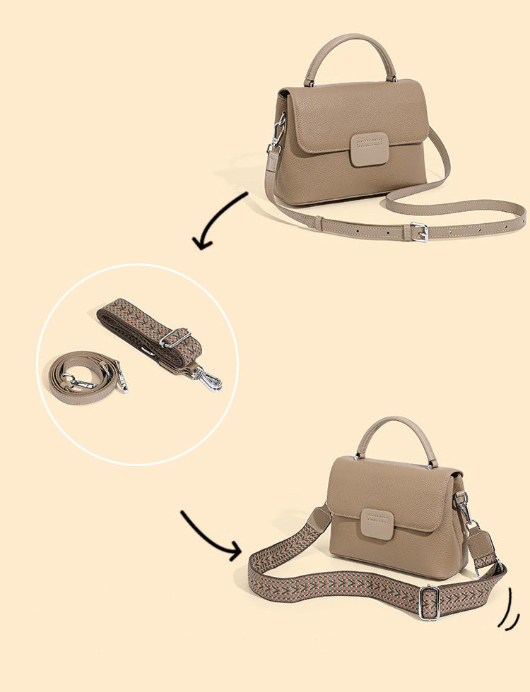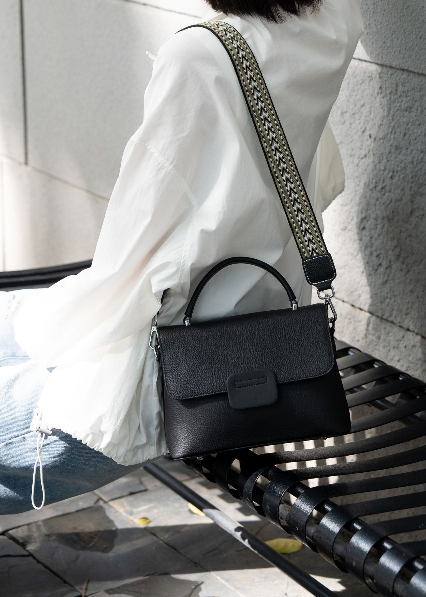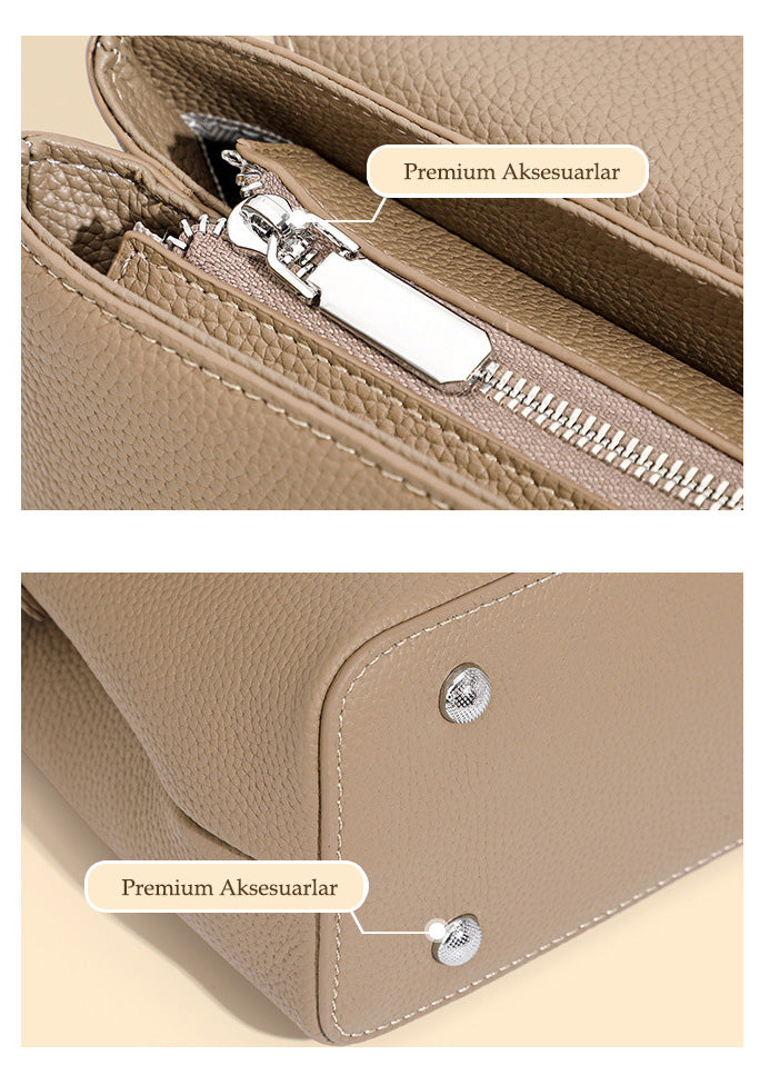 Hakiki deriden üretilmiştir. Şık ve fonksiyonel bir tasarıma sahiptir. İki farklı omuz askısı ile gönderilmektedir.